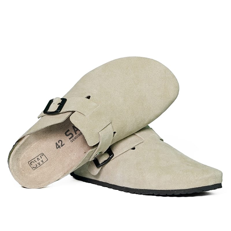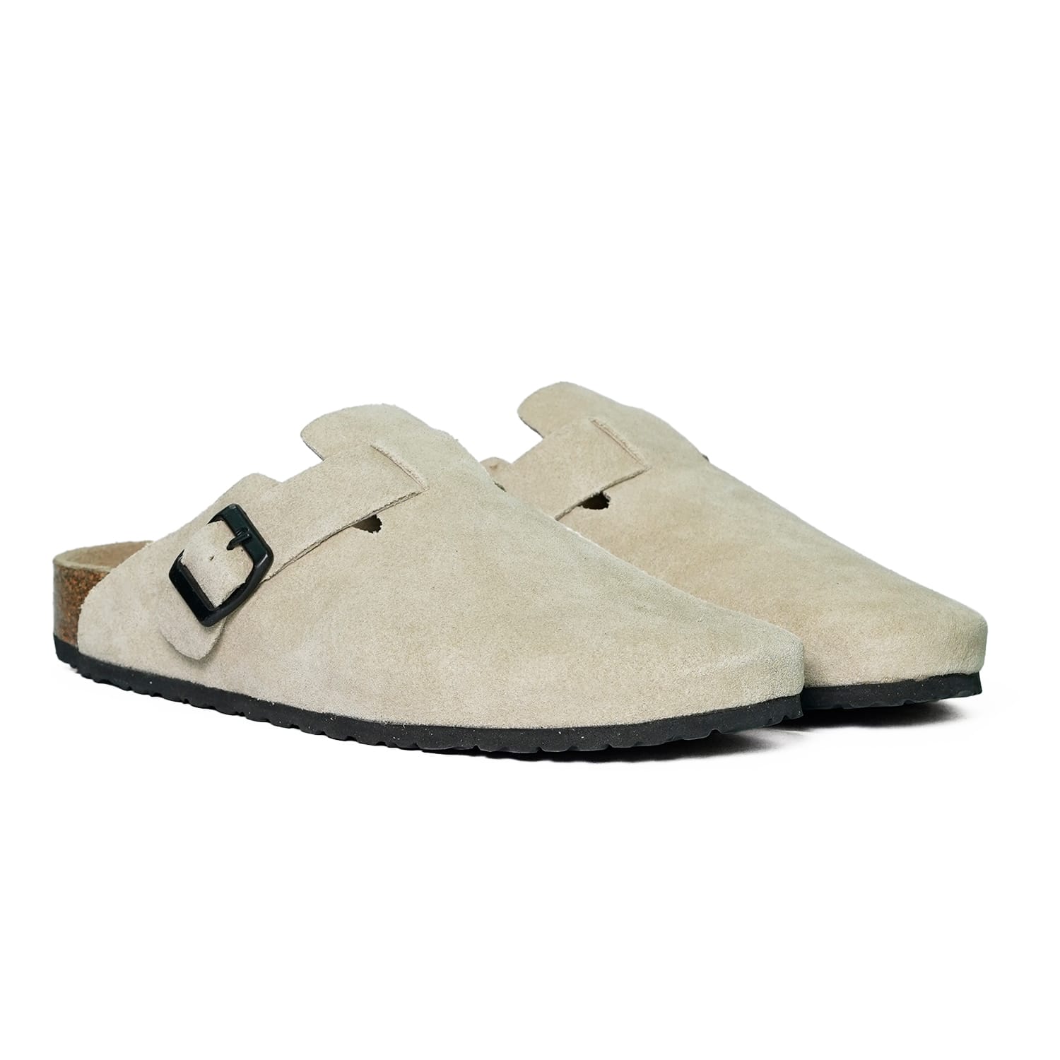 Step into comfort and timeless style with our premium suede leather slip-on clog. Crafted from high-quality suede leather, this shoe features a soft, velvety texture that exudes casual elegance. The contoured cork footbed provides excellent arch support and molds to the shape of your foot over time for a truly custom fit. A durable rubber sole ensures long-lasting traction, while the adjustable buckle strap offers a secure, personalized fit. Perfect for both indoor lounging and outdoor strolls, this clog combines comfort, style, and functionality in one versatile design.