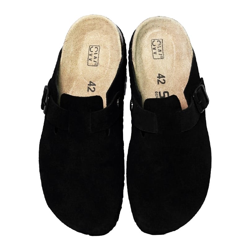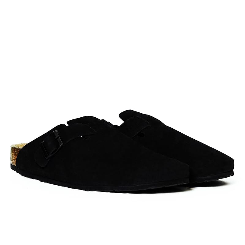 Step into comfort and timeless style with our premium suede leather slip-on clog. Crafted from high-quality suede leather, this shoe features a soft, velvety texture that exudes casual elegance. The contoured cork footbed provides excellent arch support and molds to the shape of your foot over time for a truly custom fit. A durable rubber sole ensures long-lasting traction, while the adjustable buckle strap offers a secure, personalized fit. Perfect for both indoor lounging and outdoor strolls, this clog combines comfort, style, and functionality in one versatile design.