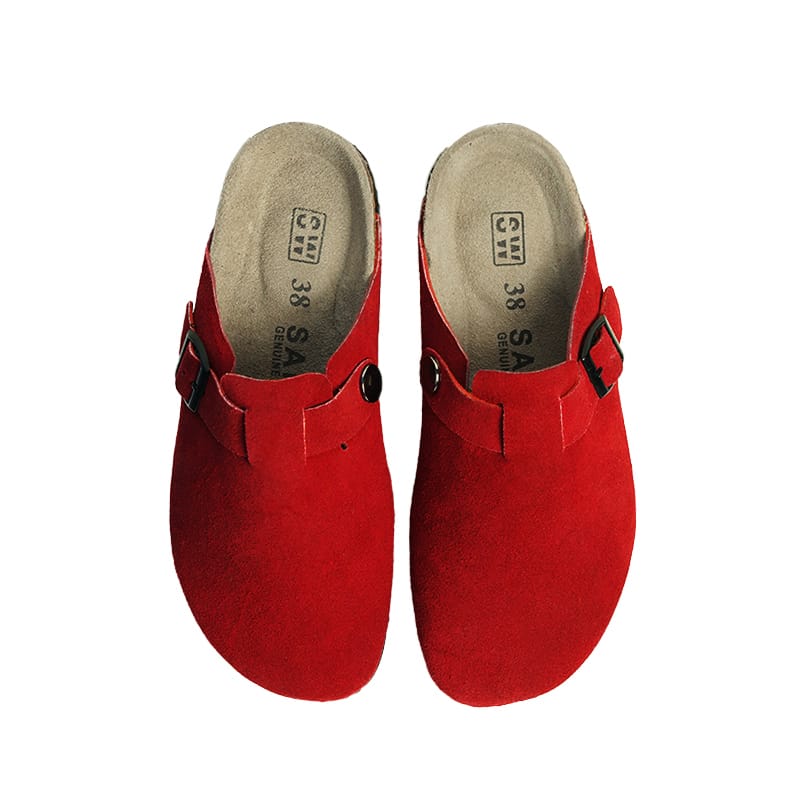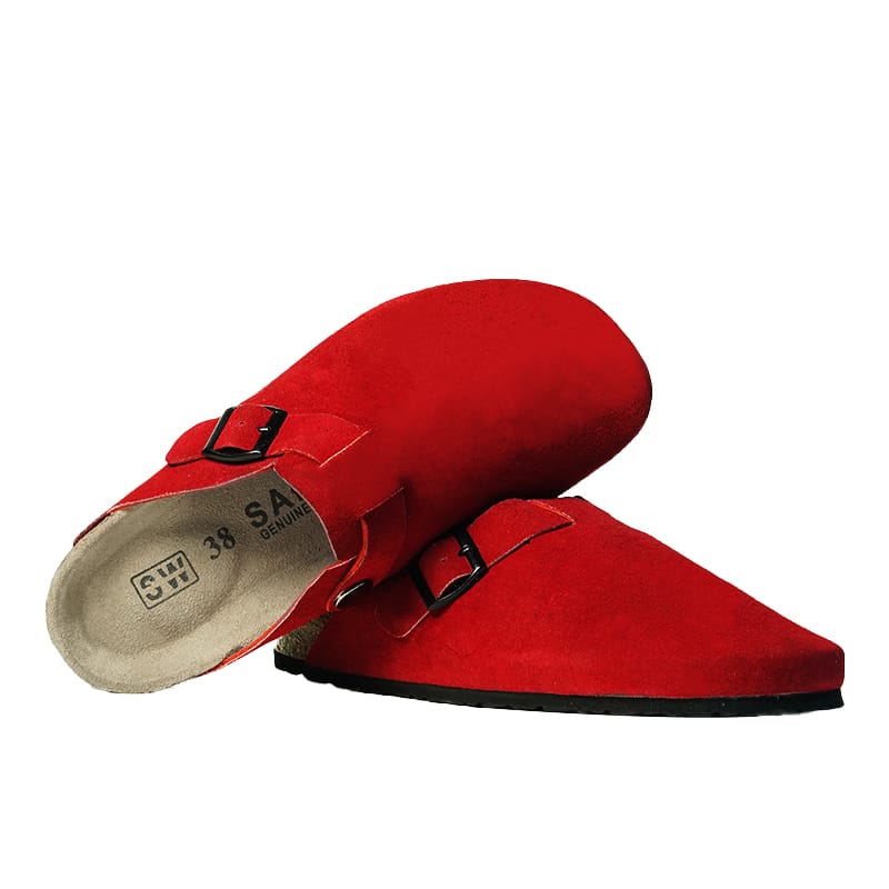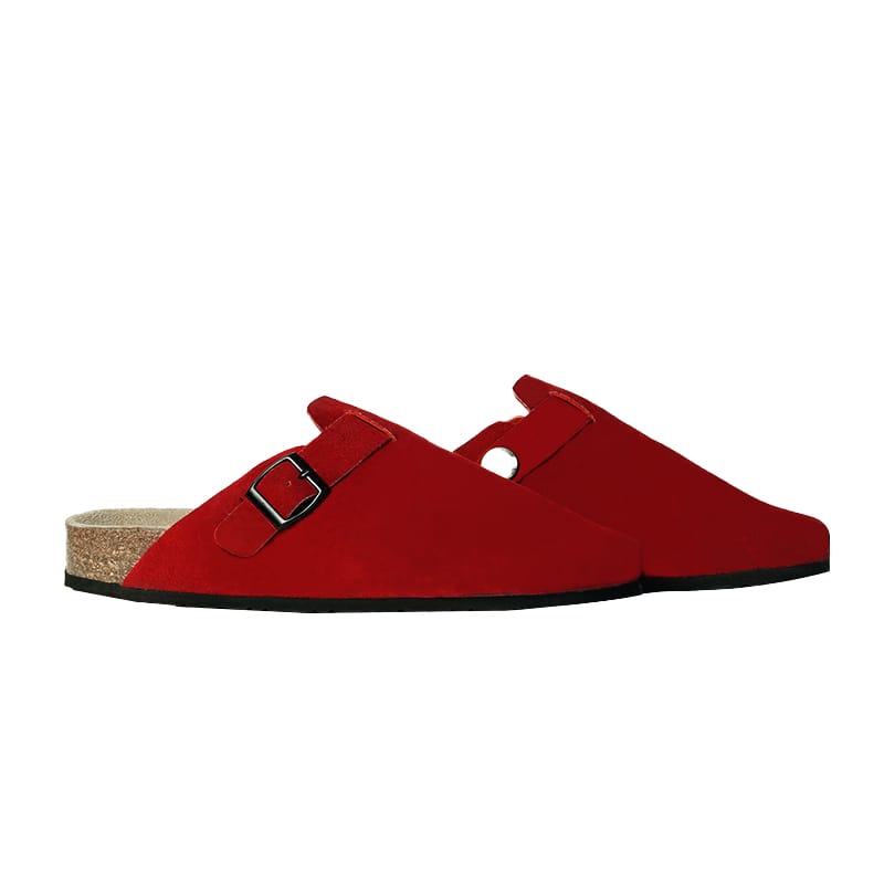 Step into comfort and timeless style with our premium suede leather slip-on clog. Crafted from high-quality suede leather, this shoe features a soft, velvety texture that exudes casual elegance. The contoured cork footbed provides excellent arch support and molds to the shape of your foot over time for a truly custom fit. A durable rubber sole ensures long-lasting traction, while the adjustable buckle strap offers a secure, personalized fit. Perfect for both indoor lounging and outdoor strolls, this clog combines comfort, style, and functionality in one versatile design.