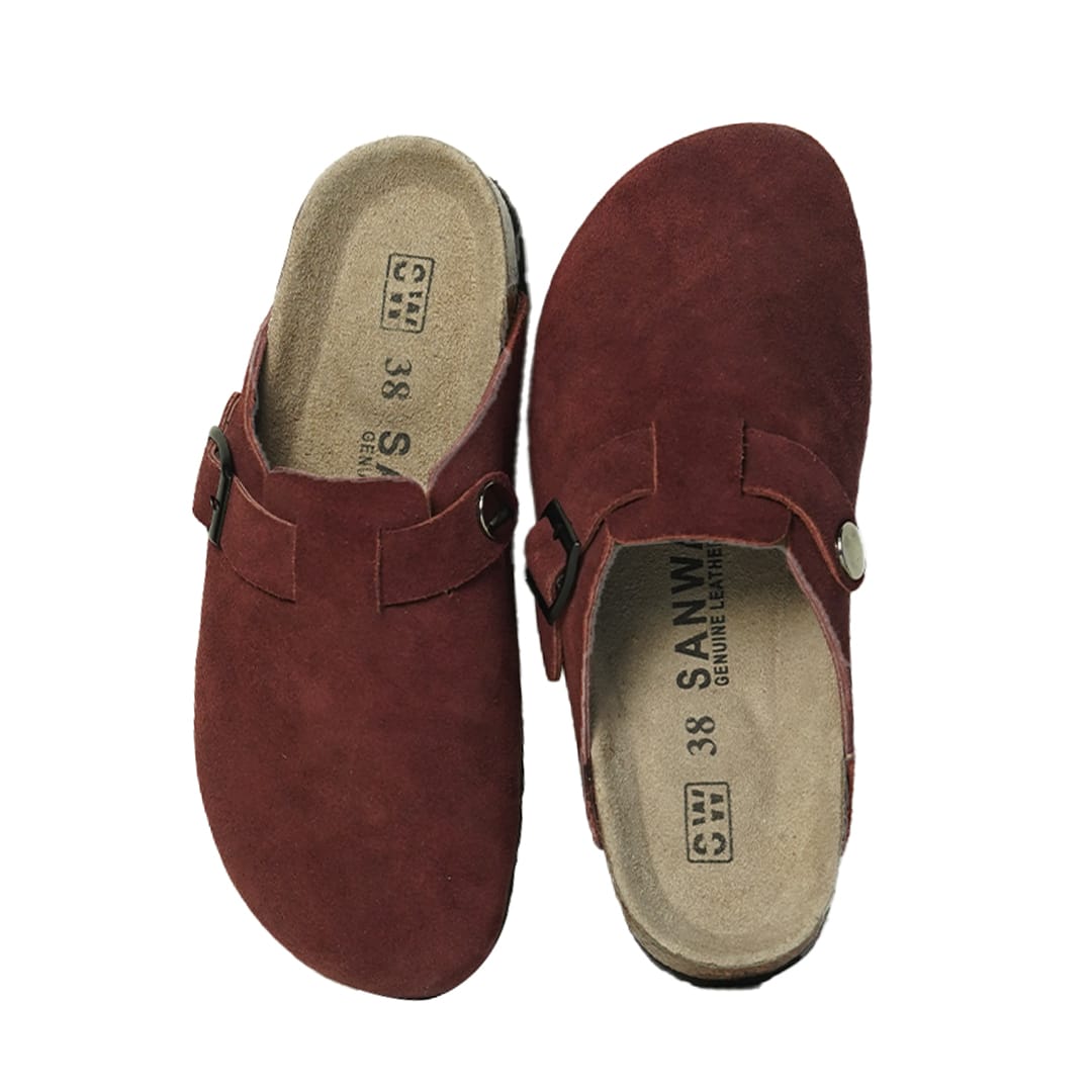 Step into comfort and timeless style with our premium suede leather slip-on clog. Crafted from high-quality suede leather, this shoe features a soft, velvety texture that exudes casual elegance. The contoured cork footbed provides excellent arch support and molds to the shape of your foot over time for a truly custom fit. A durable rubber sole ensures long-lasting traction, while the adjustable buckle strap offers a secure, personalized fit. Perfect for both indoor lounging and outdoor strolls, this clog combines comfort, style, and functionality in one versatile design.